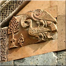 Le tympan de la porte ouest montre le Christ entouré des vierges sages à sa droite, qu'il accueille, et des vierges folles à sa gauche, devant qui il ferme la porte, selon l'histoire rapportée dans l'évangile. Les vierges ici portent la barbe: on a dit que c'était pour accentuer la portée universelle du message... |