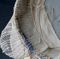 Sous la toile, au sommet, un bourrelet de coton donne à la coiffe un aspect légèrement bombé. Par dessus est posée une étamine et enfin un satin de soie ou de coton souvent bleu.