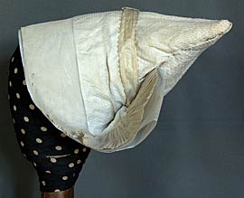 Le tulle en bordure de la passe est également plissé à l'ongle. Cette passe est relevée en forme d'aile soutenue par une mousseline amidonnée.