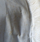 La large passe en piqué de coton, solidaire à la bonnette, est bordée d'une mousseline sans ruché.