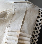 À l'avant deux bandes de mousseline ourlée sont renforcées par un large ourlet aux extrémités tuyautées.