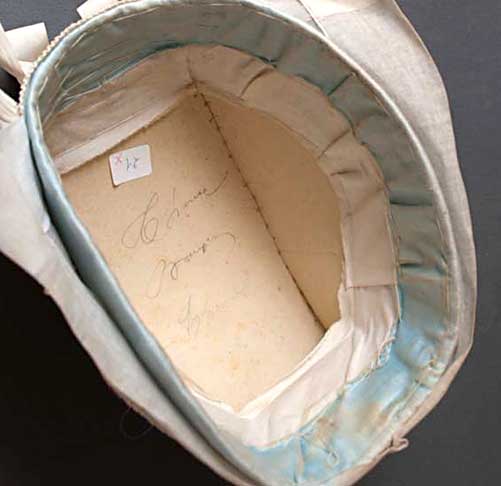 Ce champanais de demi-deuil a été porté par une certaine Thérèse, comme l'indique l'inscription sur la carcasse en carton.