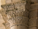 On se retourne, et dans la lumière qui vient du sud du transept, un chapiteau encore, végétal : une simple composition de feuilles d'acanthe, mais claire, qui affirme la montée de la force vitale, la souplesse de la plante et les interactions multiples entre les feuilles. L'imagier y a mis juste ce qu'il faut d'abstraction pour que le mouvement d'élévation, de dynamisme soit premier, ce qu'il faut d'ordre pour l'apaisement, et ce qu'il faut de représentation pour qu'on se sente familier de ce qu'on voit.
