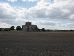 C'est au-dessus du village de Lanville, une silhouette romane familière, presque massive, posée dans un après-midi d'automne au bord d'un champ labouré.